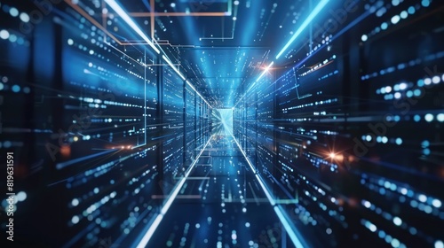 © @desy, Obraz premium Digital data technology background with blue light, Digital cyber space, High speed internet digital data transfer, future technology