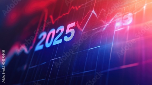 Fototapeta premium Digital data visualization. A futuristic graphic showing data trends for the year 2025, on a vibrant background