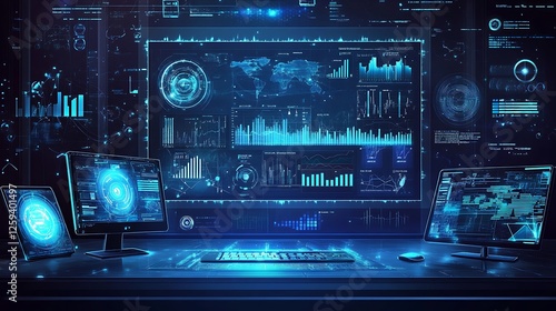 Fototapeta premium Digital Data Visualization: Futuristic Tech Workspace