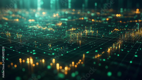 © VERTEX SPACE, Obraz premium Digital data visualization with glowing lines and dots