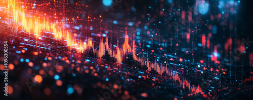 © Liffer, Fototapeta premium Digital data visualization with vibrant colors and dynamic patterns, showcasing cryptocurrency trends and market fluctuations in futuristic style