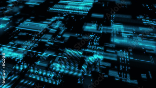 © Mykola, Obraz premium Digital database cyberspace. Decoding algorithms hacked software. Cyber security with moving particles. Big data visualization. 3d rendering.