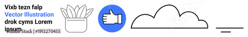 © robu_s, Obraz premium Digital design, branding, web design, graphic templates, creativity, visual communication. Minimalistic plant, thumbs-up icon cloud underlined text. Branding and digital design concept