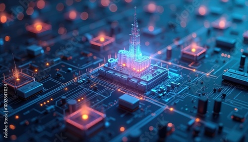 © pucko_ns, Obraz premium Digital distribution center inside and communication network concept