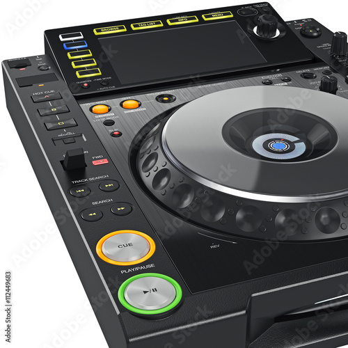 Fototapeta premium Digital dj music turntable mixer with buttons, close view. 3D graphic