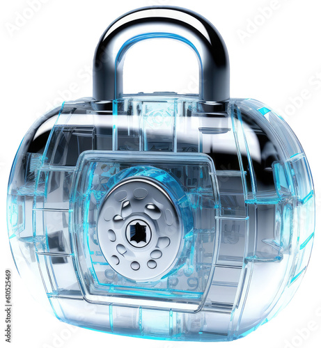 © Flowal93, Fototapeta premium Digital dlock as concept for cyber security and data protection isolated on a transparent background, generative AI technology