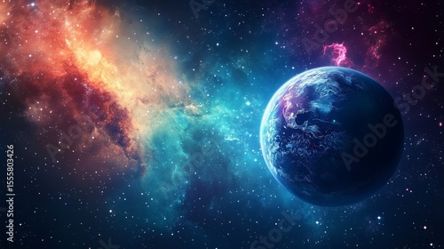 © Алена Мухина, Obraz premium Digital Earth Globe in Dark Space with Glowing Lights