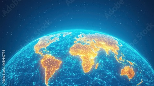 © Xolonavt, Fototapeta premium Digital earth globe network connection technology. Global world network system. Internet, communication, technology, data and connection. Modern digital visualization, abstract background, science