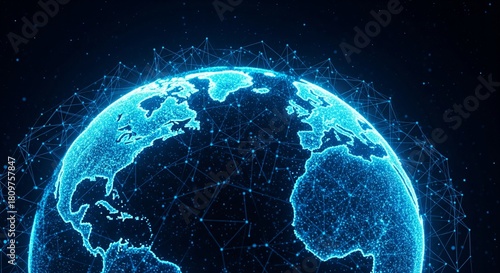 © Photo Agency, Obraz premium Digital earth globe with network connection in space