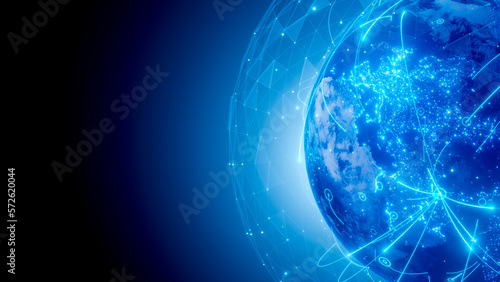 © pingingz, Fototapeta premium digital earth line light communication network background.