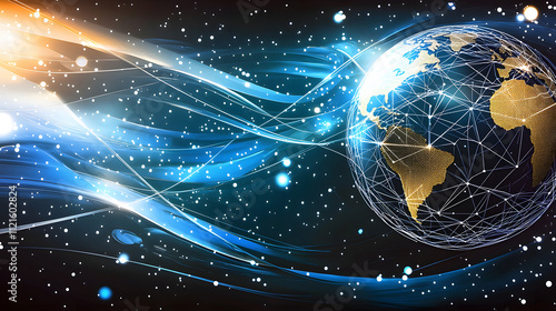 © 用脚 开门, Obraz premium Digital earth with abstract glowing design elements