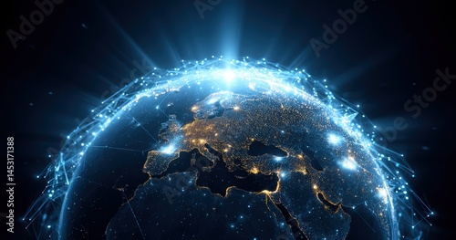 © Photique, Obraz premium Digital Earth with global network connections glowing in the dark.