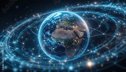 © Thanarach, Obraz premium Digital Earth with Global Network Connectivity