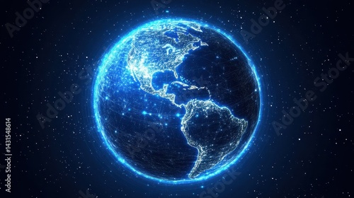 Fototapeta premium Digital Earth with interconnected luminous paths, network connection, global...