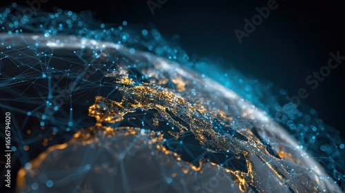 Fototapeta premium Digital Earth with interconnected luminous paths, network connection, global...