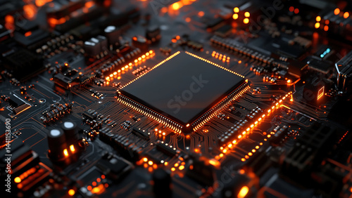 © Nindya, Obraz premium digital electronic chip components background, network 30