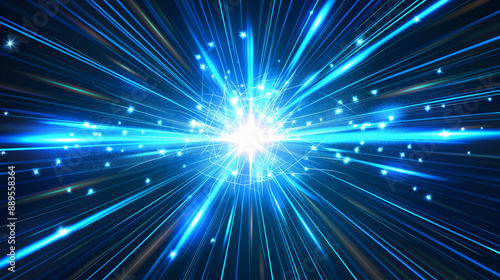 Naklejka premium Digital energy technology concept, vector abstract with blue light rays and...