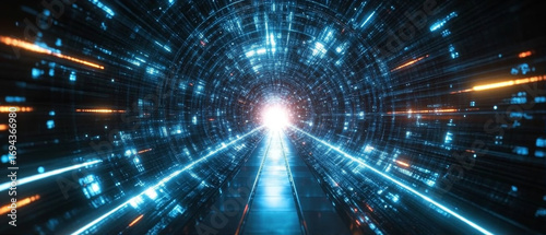 © jianjian, Fototapeta premium Digital Explosion of Light with a Central Bright Point and Radiating Energy