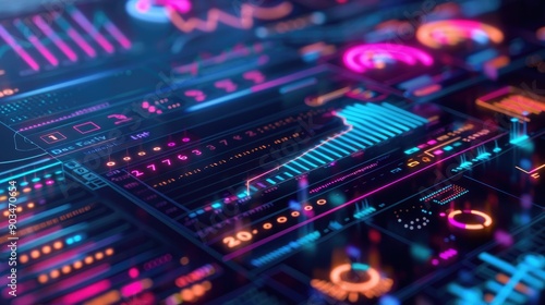Obraz premium Digital financial analysis interface with neon highlights