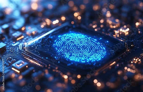 Fototapeta premium Digital fingerprint on illuminated blue circuit board