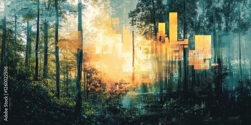 © NpicArt, Obraz premium Digital forest layers create an abstract nature landscape composition