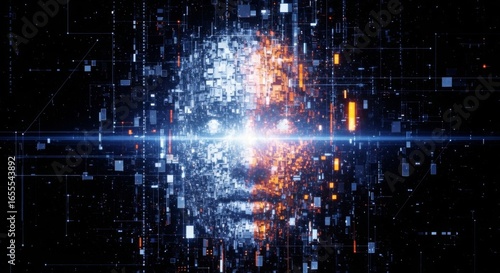 © kholik, Obraz premium Digital formed from glowing data blocks on black background