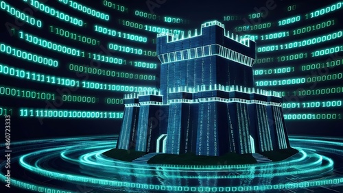 © fizza, Obraz premium Digital fortress made of binary codes and digits