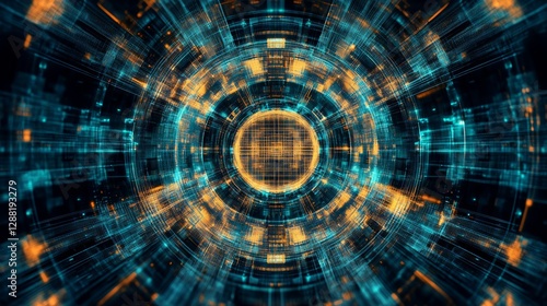 © atipong, Fototapeta premium Digital Fusion: Abstract Technology Background with Dynamic Circular Patterns