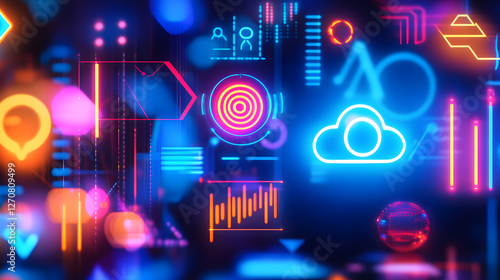 Obraz premium Digital Futuristic Visuals Showcasing High-Tech Innovations and Concepts in a Colorful Cyber Environment