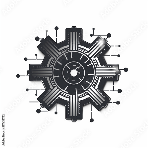 © connel_design, Obraz premium Digital gear icon with circuit elements.