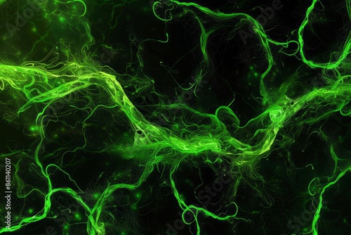© Straxer, Obraz premium Digital generated image of green infinity covered by organic turbulent splines on black background.