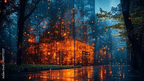 © tunanon, Naklejka premium Digital Glass Office in Cascading Lights