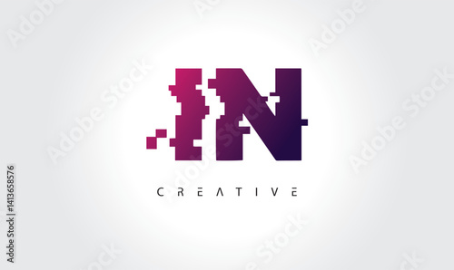 Obraz premium Digital Glitch IN Letter Logo | Modern Creative Branding Design | Technology Business Identity
