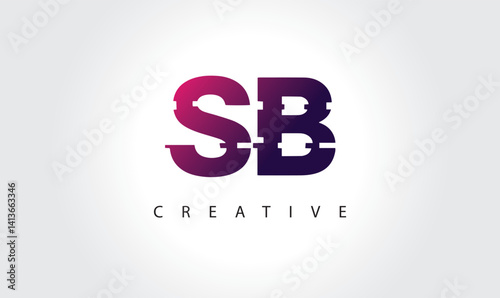 Obraz premium "Digital Glitch SB Letter Logo | Modern Creative Branding Design | Technology...