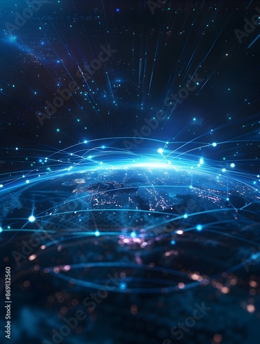 Obraz premium Digital Global Connectivity and High Speed Data Transfer Network on Futuristic Earth Visualization