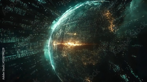 © Pixelzone, Obraz premium Digital Globe: Futuristic Technology and Global Network
