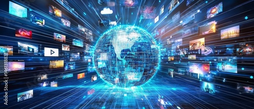 Obraz premium Digital globe representing interconnected global networks.