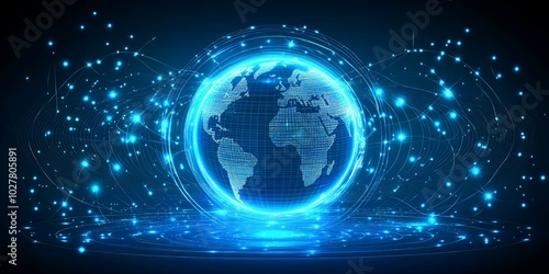 © Habibur Rahaman, Obraz premium Digital globe with blue light trails.