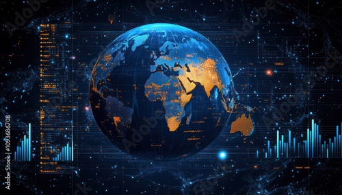 Fototapeta premium Digital Globe with Data Visualization and Graphs