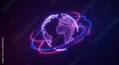 Obraz premium Digital globe with glowing rings