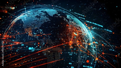 Obraz premium Digital Globe with Mapped Economic Policies Showcasing Global Diversity