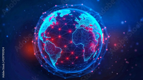 © Poetra RH, Obraz premium Digital Globe with Network Connections Representing Global Technology and Communication
