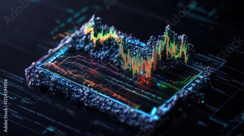 Fototapeta premium Digital graph displayed on computer screen indicating financial trends and performance in professional trading environment