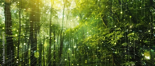 © NIPAPORN, Fototapeta premium Digital grid overlay on a natural forest scene