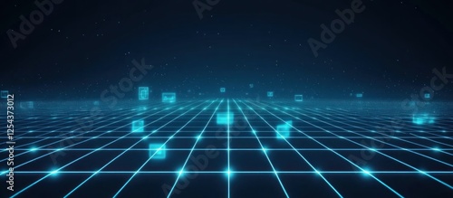 Obraz premium Digital Grid with Glowing Blue Lines and Scattered Data