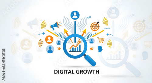 © miyui_283, Fototapeta premium デジタルマーケティング戦略と成長:ターゲットリーチと効果的なキャンペーン「DIGITAL GROWTH」