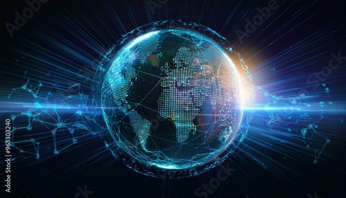 Obraz premium digital hologram globe with glowing data streams