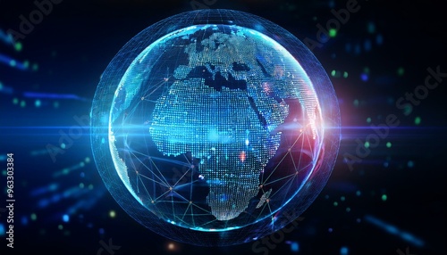 Obraz premium digital hologram globe with glowing data streams