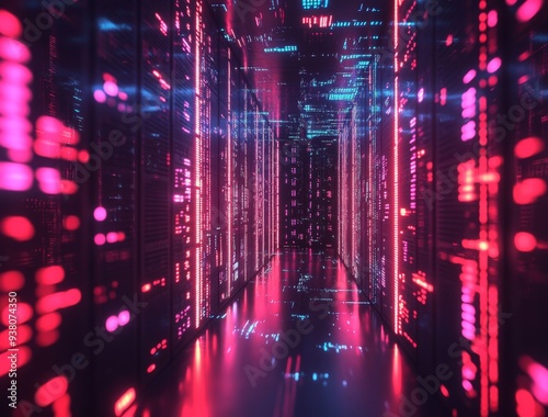 © Ekkarat_Studio, Obraz premium Digital Hologram of Data Storage in Virtual Space on Black Background