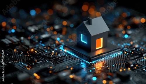 Obraz premium Digital home on circuit board